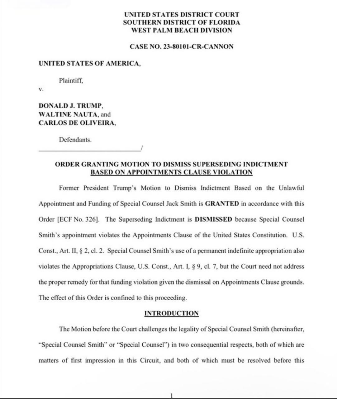 وقال محامو ترامب إن المستشار الخاص جاك سميث تم تعيينه بشكل غير قانوني في انتهاك لشرط التعيينات في الدستور، وأن مكتبه تم تمويله بشكل غير صحيح من قبل وزارة العدل.