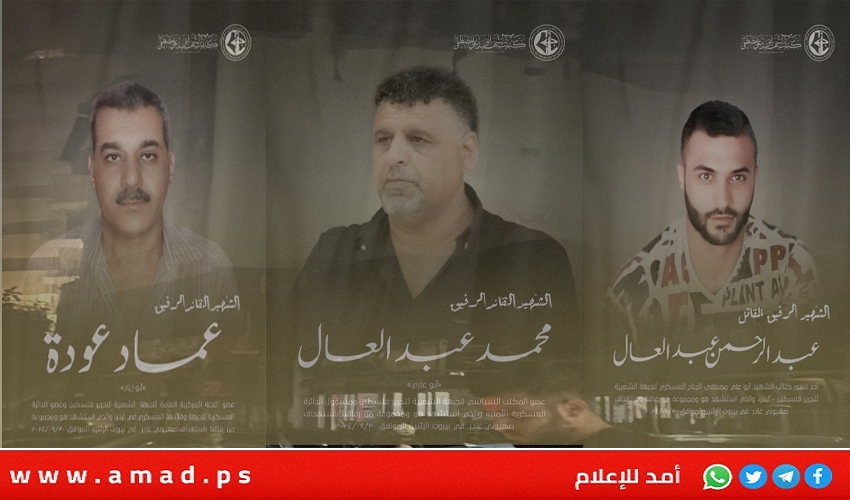 وقالت أن القادة الثلاثة "ارتقوا شهداء على طريق تحرير فلسطين فجر يوم الإثنين 30 أيلول 2024. إثر عملية اغتيال غادرة نفذتها طائرات الاحتلال الصهيوني في منطقة الكولا في العاصمة اللبنانية بيروت".