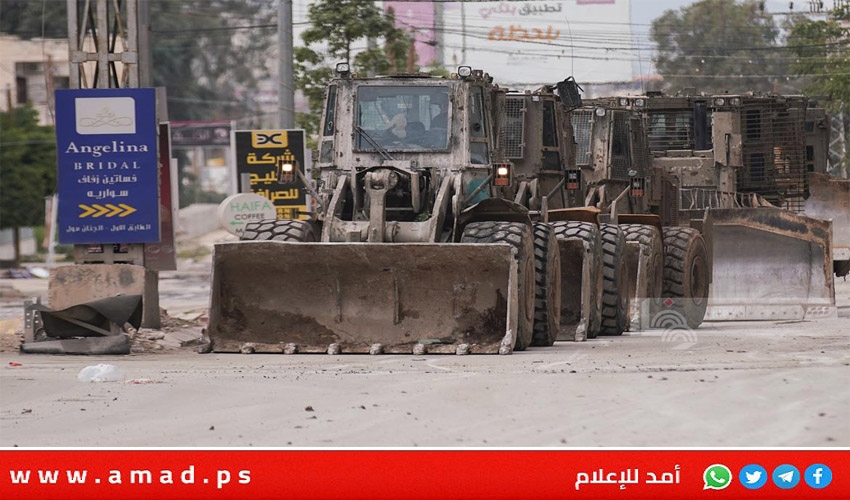 ويواصل الاحتلال الدفع بتعزيزاته العسكرية إلى مدينة جنين ومخيمها، من حاجز الجلمة العسكري، فيما تتواصل عمليات الهدم في عده حارات من مخيم جنين.