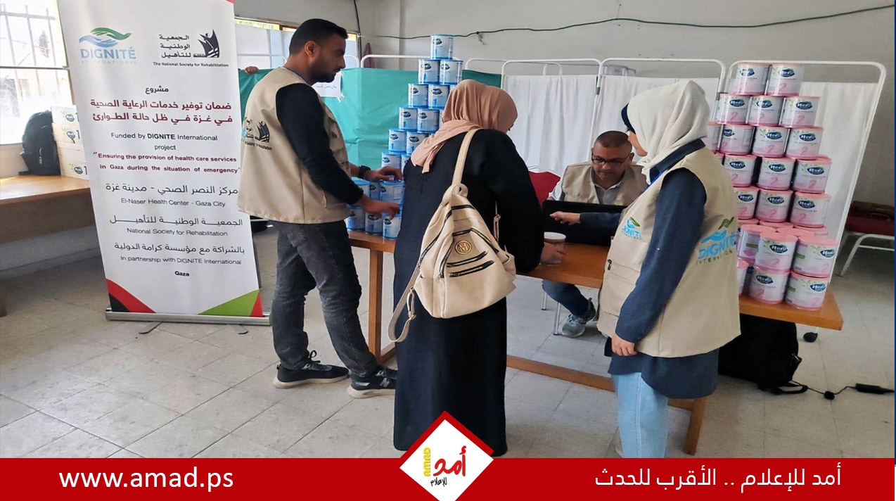 الجمعية الوطنية للتأهيل : مستمرين بتوزيع علب الحليب على الأطفال في غزة