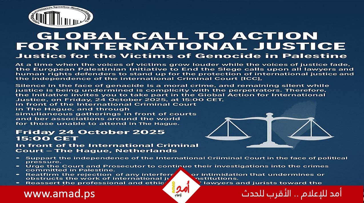ودعت جميع المهتمين بالعدالة وحقوق الإنسان إلى المشاركة في الوقفة المركزية أمام المحكمة الجنائية الدولية، إلى جانب فعاليات متزامنة ستُنظَّم أمام المحاكم ونقابات المحامين حول العالم لمن يتعذر عليهم الحضور إلى لاهاي.