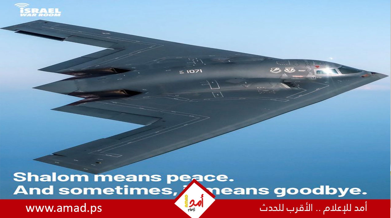 أمد/ تل أبيب: على وقع تبادل التهديدات بين إسرائيل وإيران، ومع تصاعد الحديث عن احتمال ضربة إسرائيلية قريبة، أثار منشور لحساب “Israel War Room” على منصة “إكس” تفاعلًا واسعًا، بعدما أرفقه بصورة لطائرة شبح وكتب: "شالوم تعني السلام… وأحيانًا تعني وداعًا"، في ردّ مباشر على منشور للمرشد الإيراني علي خامنئي قال فيه: "سنُركع العدو".