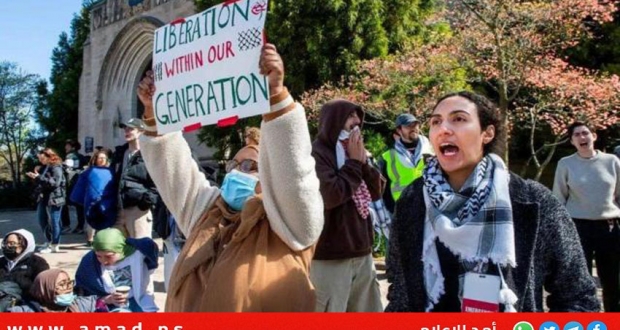 وفي 18 أبريل/نيسان الجاري، بدأ طلاب مؤيدون للفلسطينيين في جامعة كولومبيا بالولايات المتحدة اعتصاماً في حديقة الحرم الجامعي، احتجاجاً على الاستثمارات المالية المستمرة للجامعة في الشركات التي تدعم احتلال فلسطين و"الإبادة الجماعية" في غزة، وتم اعتقال 108 طلاب خلال المظاهرات.