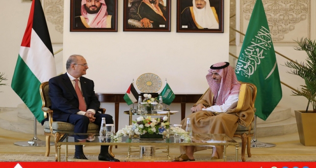وأعرب رئيس الوزراء، لوزير الخارجية السعودي عن شكر القيادة والحكومة الفلسطينية، للمملكة العربية السعودية وقيادتها، على الجهود التي تبذلها في سبيل حشد الدعم والتأييد الدولي للاعتراف بدولة فلسطين، والذي توج مؤخرا باعتراف النرويج وايرلندا وإسبانيا، ودول أخرى في مُقبِل الأيام.