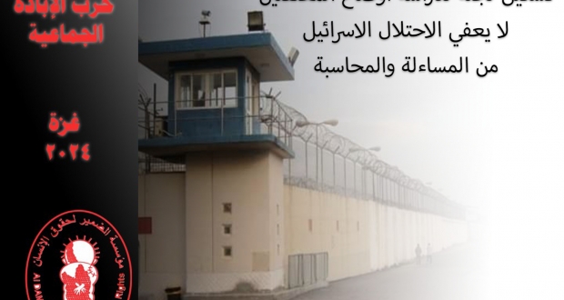 مؤسسة الضمير تؤكد بأن تشكيل لجنة لدراسة أوضاع معتقلي غزة من الجهات الأمنية الإسرائيلية لهو دليل على ارتكاب أبشع الجرائم بحق المعتقلين في ظل عدم تمكن المحامين والجهات الدولية الحقوقية ومؤسسات حقوقية من الداخل المحتل واللجنة الدولية للصليب الأحمر من زيارتهم والاطلاع على أوضاع اعتقالهم والقيام بتفقد أماكن الاحتجاز، وعليه تطالب مؤسسة الضمير لحقوق الإنسان : -