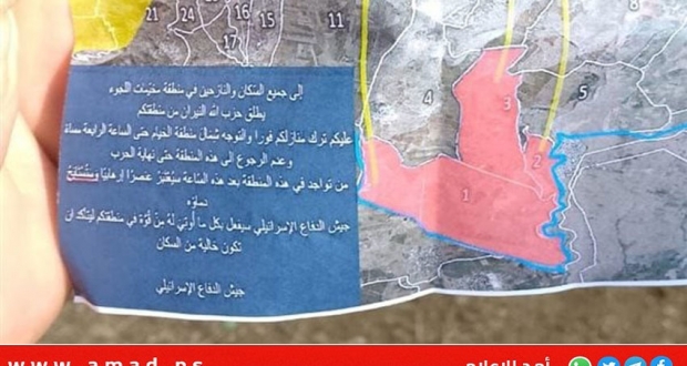 تل أبيب: قالت وسائل إعلام لبنانية وعبرية صباح يوم الأحد، إن جيش الاحتلال الإسرائيلي، ألقى منشورات فوق بلدة الوزاني بجنوب لبنان تدعو الموجودين في هذه المنطقة وجوارها الى إخلائها.