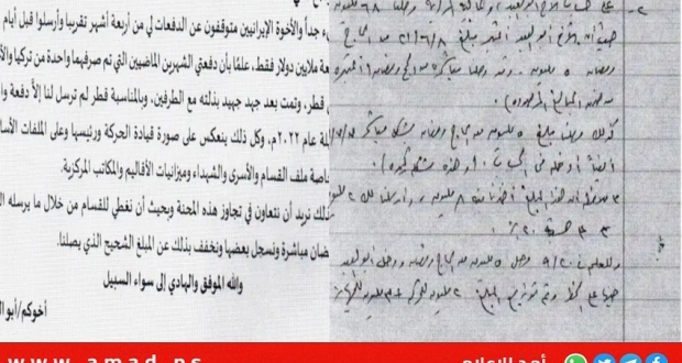 وفي عام 2020، بحسب الوثائق المضبوطة، تم تحويل 12 مليون دولار، وتظهر إحدى الوثائق المضبوطة مدى تورط الإيرانيين في توزيع الأموال داخل حماس ومدى رغبة قادة حماس في وضع أيديهم على بعض الأموال.