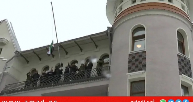 وكانت وكالة "تاس" قد ذكرت، أن السفارة السورية أزالت العلم السابق الذي كان مرفوعًا فوق مبناها، علماً أن العلم الوطني القديم اختفى من على مبنى البعثة الدبلوماسية مساء يوم الأحد 8 ديسمبر.