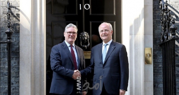 وبحث رئيس الوزراء محمد مصطفى، خلال لقائه رئيس وزراء بريطانيا كير ستارمر، ووزير الخارجية ديفيد لامي، رفع مستوى العلاقة الثنائية بين البلدين إلى شراكة استراتيجية وتأكيد الالتزام بوجوب حل الدولتين وإنهاء الاحتلال، ناقلا تحيات سيادة الرئيس محمود عباس، مثمنا الدعم البريطاني المقدم لفلسطين.