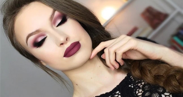 شفاه جريئة أو زاهية مع مكياج عيون بسيط يظهر لمسة لونية بسيطة تُضفي لمسةً من التألق على إطلالتكِ حتى مع فستان أسود. تُضفي هذه الشفاه القرمزية الداكنة لمسةً من التألق على إطلالتكِ المسائية.