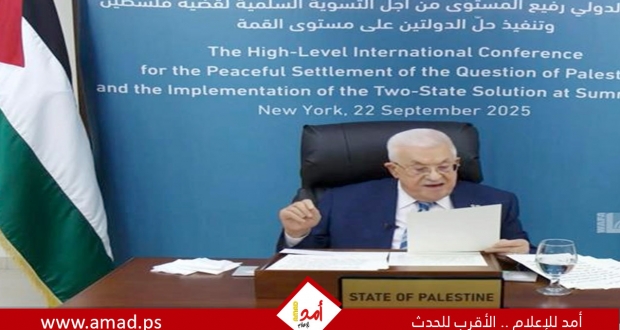 أُعبر باسمِ دولةِ فلسطينَ عنْ بالغِ التقديرِ للرئاسةِ المشتركةِ، وللأممِ المتحدة، ولكلِ الدولِ المشاركةِ، على ما صدرَ عنْ مؤتمرِ يوليو منْ إعلانِ نيويوركْ التاريخي ِالذي أقرّتْهُ الجمعيةُ العامةُ بأغلبية ٍساحقة، إيذاناً ببَدءِ خُطواتٍ لا رجعةَ عنها لإنهاءِ الكارثةِ الإنسانيةِ وإنهاءِ الاحتلال، وفقَ الشرعيةِ الدوليةِ ومبادرة ِالسلام ِالعربية، وتجسيد ِدولة ِفلسطينَ المستقلة بعاصمتها القدس الشرقية، ِإلى جانب ِدولة إسرائيلَ في أمنٍ وسلامٍ وحُسنِ جوار.