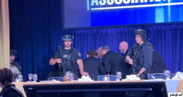 وشهد فندق هيلتون واشنطن بالولايات المتحدة إطلاق نار خلال حفل عشاء لمراسلي البيت الأبيض بحضور ترامب، ما دفع جهاز الخدمة السرية لإجلاء الرئيس الأميركي وزوجته ميلانيا، إضافة إلى أعضاء بارزين في إدارته إلى خارج القاعة التي كانوا يتواجدون فيها بالفندق.