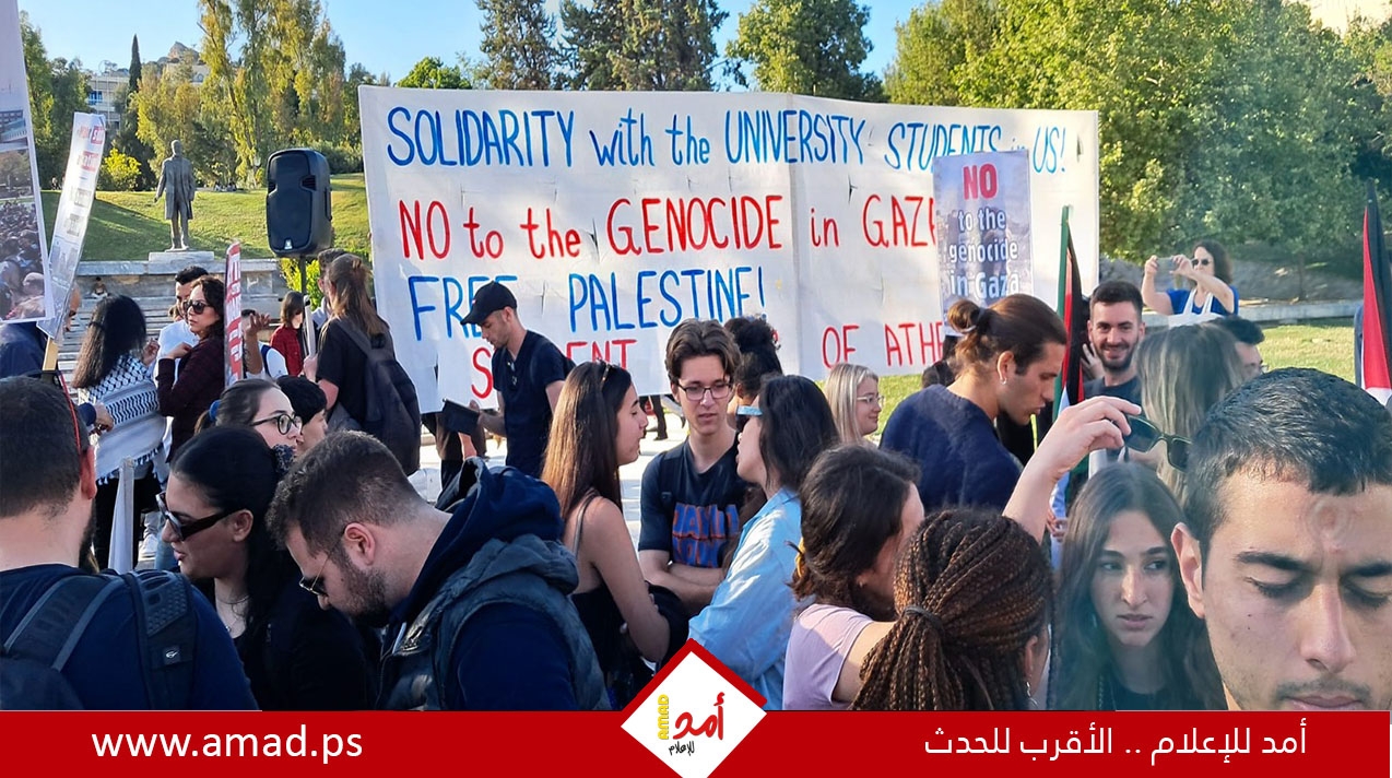 احتشد طلبة الجامعات اليونانية ومتضامنون يونان، وابناء الجاليات الفلسطينية والعربية، في تجمع حاشد في ساحة الحرية بجانب قصر الموسيقى تضامنا مع فلسطين، ومع طلبة الجامعات الامريكية والاوروبية المتضامنين مع الشعب الفلسطيني والذين يتعرضون للقمع من قبل الشرطة وادارة الجامعات، ووصمهم بمعاداة السامية، رفع المشاركون خلال المسيرة الاعلام الفلسطينية و اللافتات التي تندد بالاحتلال الاسرائيلي ومجازره والدعم لغزة، وللمقاومة الفلسطينية، كما تطالب بوقف فوري لاطلاق النار، وفتح المعابر امام