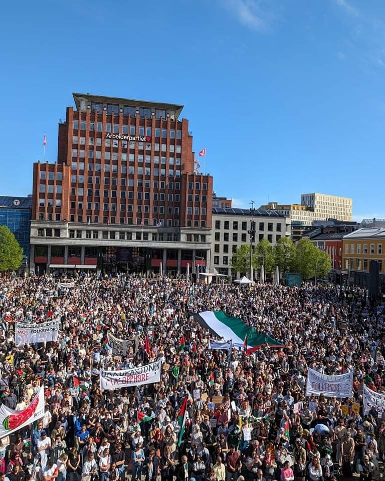تظاهرات ضخمة في النرويج دعما لحقوق الشعب الفلسطيني ونصره لغزة