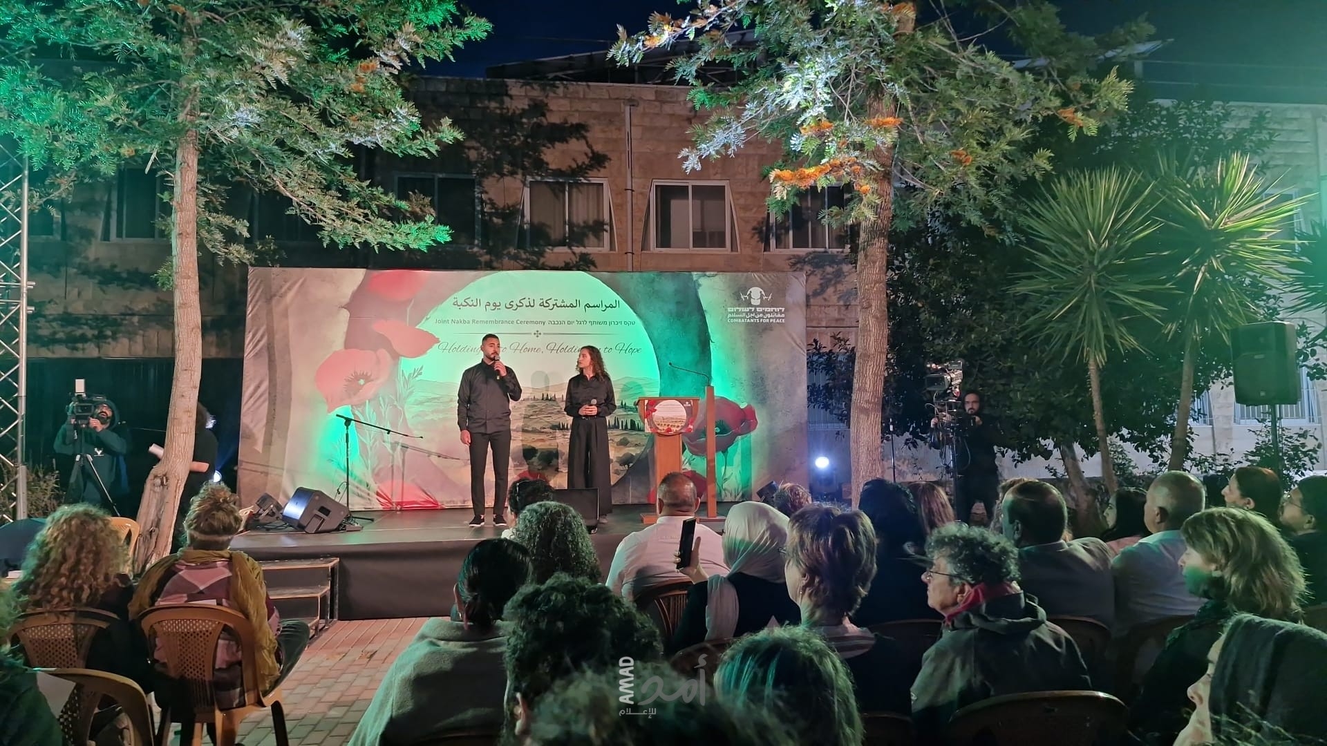 أمد/ بيت جالا: أقيمت مساء يوم الخميس في بيت جالا مراسم إحياء الذكرى السادسة على لهذا العام، ركزت المراسم على الشعار: "التشبث بالبيت، التشبث بالأمل"، عبر إحياء الكارثة التي حلت بالشعب الفلسطيني عام 1948 وربطها بالهجوم الإسرائيلي على غزة والمعاناة المستمرة في الضفة الغربية. تم بث المراسم مباشرة إلى مواقع عرض عامة وخاصة في الأراضي الفلسطينية المحتلة، إسرائيل وحول العالم، وجذبت الآلاف من المشاهدين.