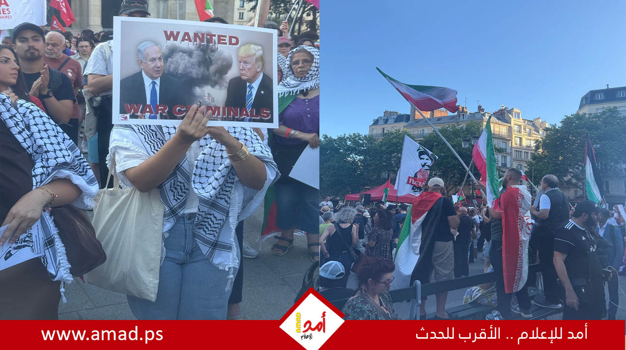 أمد/ باريس: نظم عدد من الشخصيات العربية وجهات سياسية ومدنية فرنسية، مساء الثلاثاء، وقفة احتجاجية في ميدان القديس أوغسطين وسط العاصمة الفرنسية باريس، وذلك عقب الإعلان عن وقف إطلاق النار بين إيران وإسرائيل. وجاءت الفعالية للتنديد بالعدوان الإسرائيلي على إيران وجرائم الاحتلال في المنطقة، والمطالبة بوقف الحملات الممنهجة ضد طهران.
