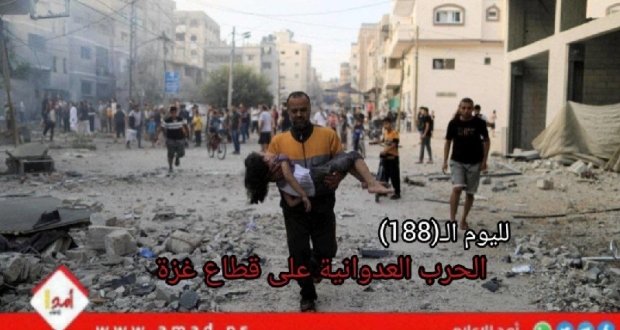 غزة: تواصل طائرات العدو الفاشي الحربية والزوارق والمدفعية، يوم الخميس التاسع والعشرين من شهر رمضان الفضيل ولليوم الثامن والثمانين بعد المئة على التوالي، استهداف المنازل الآهلة بالسكان المدنيين والعديد من المؤسسات الحكومية بشكل مباشر في قطاع غزة إضافة لاستهداف المستشفيات المساجد ومدارس الايواء.