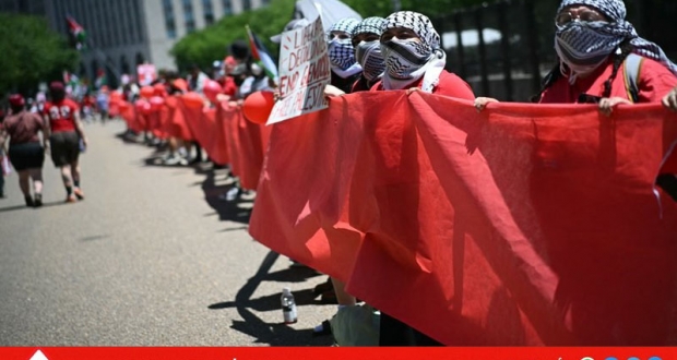 واشنطن – وكالات: طالب آلاف المتظاهرين من أمام البيت الأبيض في العاصمة الأمريكية واشنطن يوم السبت، إدارة الرئيس جو بايدن بـ"الالتزام بخطها الأحمر بشأن غزة"، مرددين شعارات مثل: "خط بايدن الأحمر كذبة"، و"الحرية لفلسطين" و"بايدن كف عن الكذب".