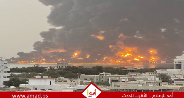 وقالت قناة اليمن الفضائية، إن الغارات على مدينة الحديدة استهدفت منشآت تخزين النفط في ميناء المدينة، ما أسفر عن اشتعال حريق ضخم فيه.