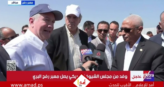 رفح: أكد محمد عادل، مراسل قناة "إكسترا نيوز" من أمام معبر رفح المصري، أن وفدًا أمريكيًا من مجلس الشيوخ أشاد بالجهود التي تبذلها الدولة المصرية من أجل إيصال المساعدات الإنسانية إلى قطاع غزة، في ظل ما وصفوه بـ "تعنت وتعسف قوات الاحتلال الإسرائيلي" في منع تدفق هذه المساعدات.