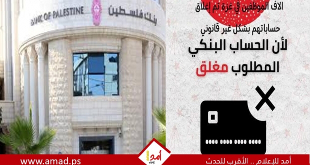 غزة: يواجه نحو 1800 موظف في قطاع غزة "إعداماً مالياً" مفاجئاً بتجميد حساباتهم في بنك فلسطين دون مسوغ قانوني.