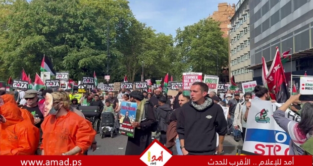وتعكس التظاهرة اتساع حالة التعاطف الشعبي في بريطانيا وارتفاع وتيرة الرفض لسياسات إسرائيل وحربها على قطاع غزة.